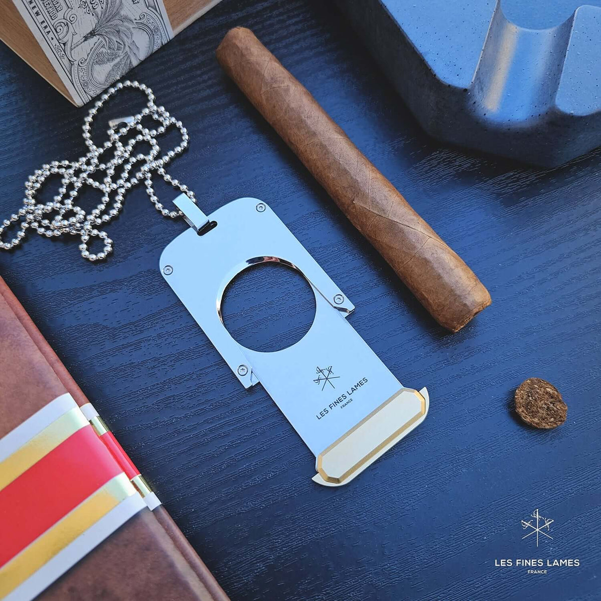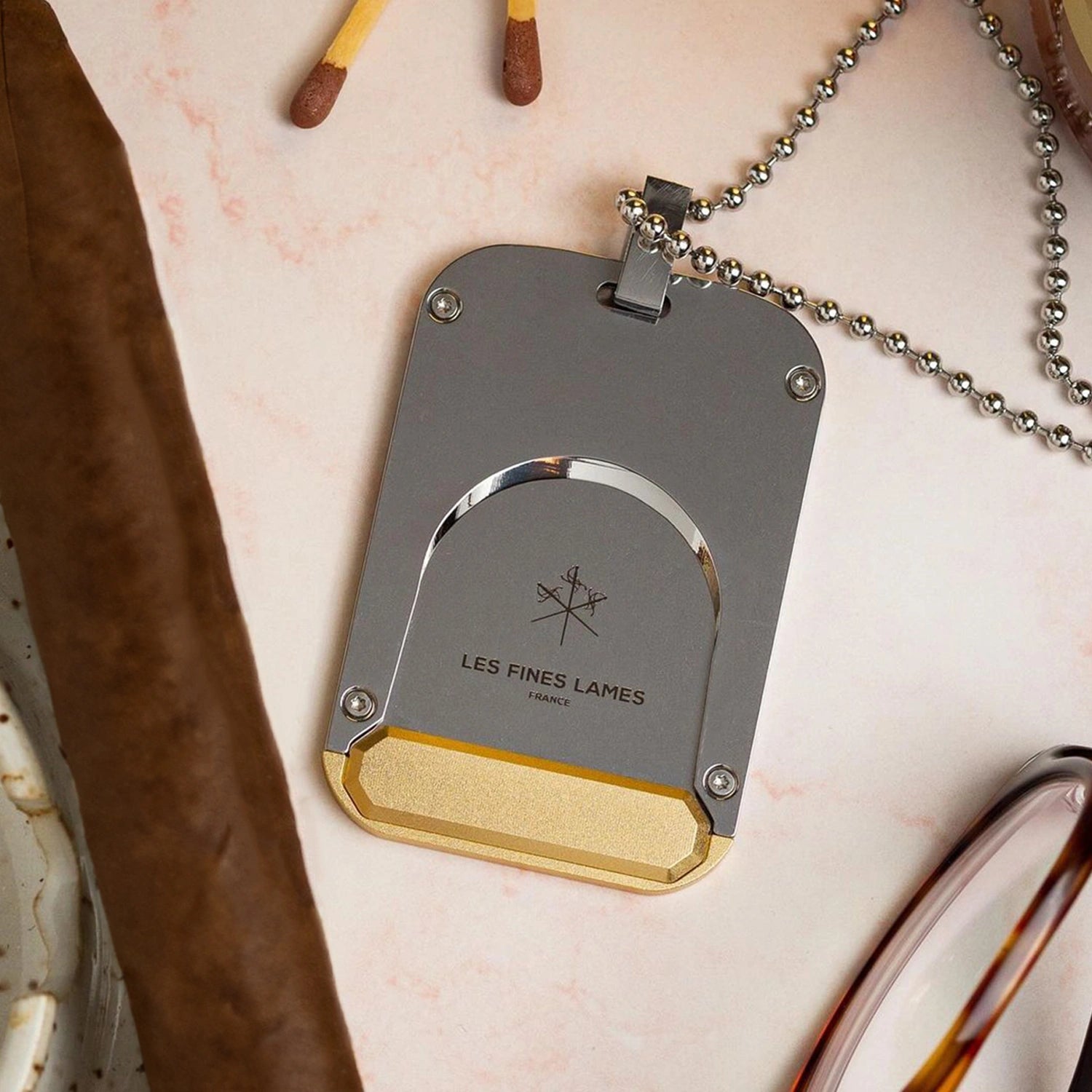 With Le TAG T135 by LES FINES LAMES, your cigar cutter is always at hand, worn as a necklace or EDC pocket accessory. Every cut is perfectly straight in seconds, letting you continue your journey without pause.