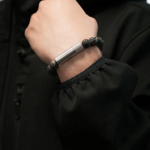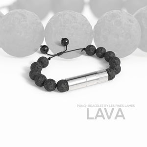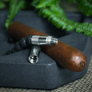 The PUNCH BRACELET by LES FINES LAMES operate in a few easy steps. First remove your bracelet from your wrist and open the clasp to reveal the blade. Then, simply twist the blade into the cap of your cigar, and voilà!