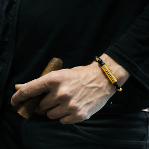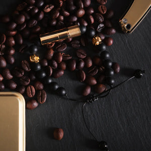 Among our most colorful designs, this Punch Bracelet features 8mm Carnelian beads, highlighted by Golden skull spacers and a Golden Punch.