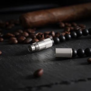 Le PUNCH BRACELET by LES FINES LAMES s’utilise en quelques étapes simples. Retirez d’abord votre bracelet de votre poignet et ouvrez le fermoir pour révéler la lame. Ensuite, il suffit de tourner la lame dans la tête de votre cigare, et voilà !