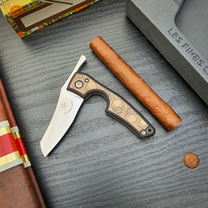 Each box comes with an adjustment tool to tighten or loosen the blade of your cigar knife, allowing you to adjust the cutting resistance to your personal comfort. You will also find an instruction booklet to help you master the art of cutting a cigar with Le PETIT cigar knife, a card that allows you to register the warranty of your product, and a few LES FINES LAMES
