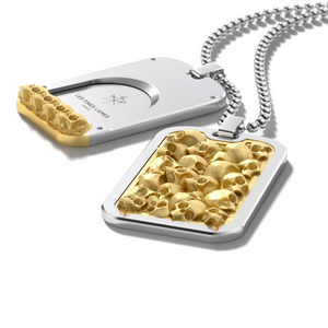 Composed of two plates, one concealing a double blade and the other featuring the Omnia Vanitas signature design, this elegant and discreet accessory marks you as a cigar aficionado. Beyond its captivating aesthetics lies the profound ''Memento Mori'' philosophy, a reminder that, much like a fine cigar, life is meant to be appreciated and savored to the fullest.